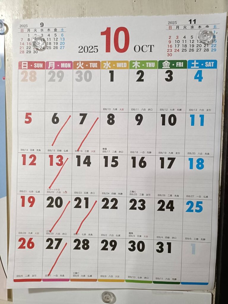Home 未分類 【10月の店休日】 【10月の店休日】 2025.10.4 未分類 Post Share Hatena Pocket RSS feedly Pin it いつもイタリア食堂ITSUKIをご利用くださり誠にありがとうございます。 赤線が引いてある日は定休日になります。どうぞよろしくお願いします。 Post Share コメントは利用できません。