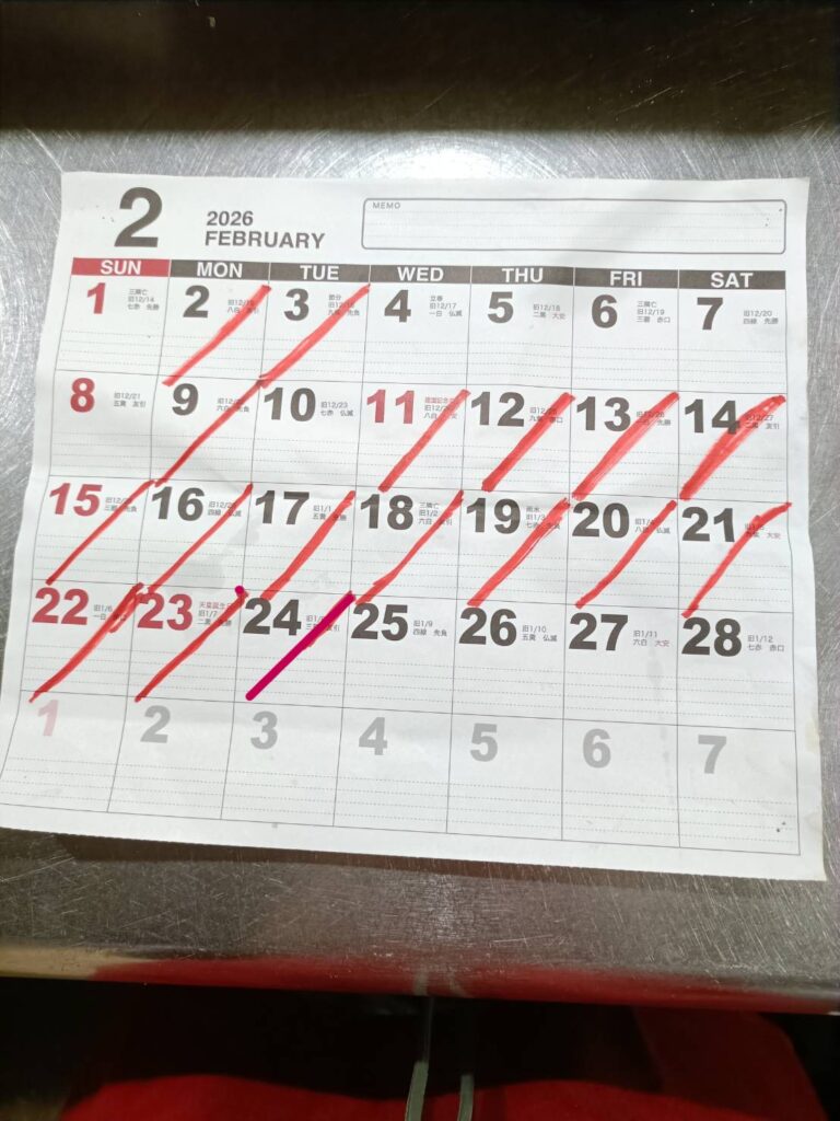 Home 未分類 【2月の店休日】 【2月の店休日】 2026.02.1 未分類 Post Share Hatena Pocket RSS feedly Pin it いつもイタリア食堂ITSUKIをご利用くださり誠にありがとうございます。 お世話になった方に会いに行くために、通常の定休日に加えて2/11~2/24の期間、休業させていただきます。またのご来店をお待ちしています。 Post Share コメントは利用できません。